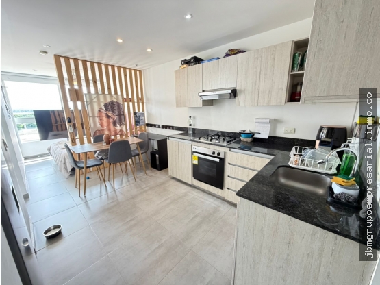 Este apartaestudio ubicado en un excelente sector de la ciudad, edificio sunset boulevard, cuenta con 1 habitacion , 2 baños uno social y uno en la habitacion, sala comedor, cocina area de labores