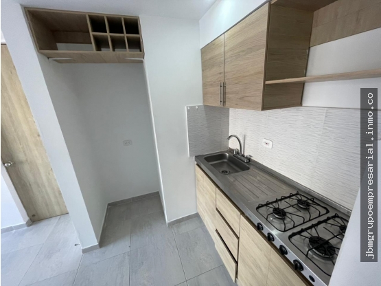 Apartamento de 52mts2 cuenta con sala-comedor, cocina amoblada, 2 habitaciones con closets y sus puntos de aire, habitacion principal con baño, baño social, estudio, aread e labores, psios en marmol, parqueadero de visitantes, ascensor, piscina, parque infantil, camaras de seguridad, porteria/vigilancia 24hrs. Cerca de parques, supermercador, canchas, transporte publico.